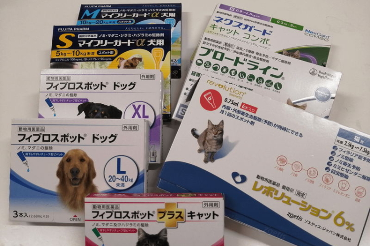 飲み薬の錠剤、クッキー、ジャーキータイプと首に垂らすスポットタイプのご用意があります。